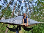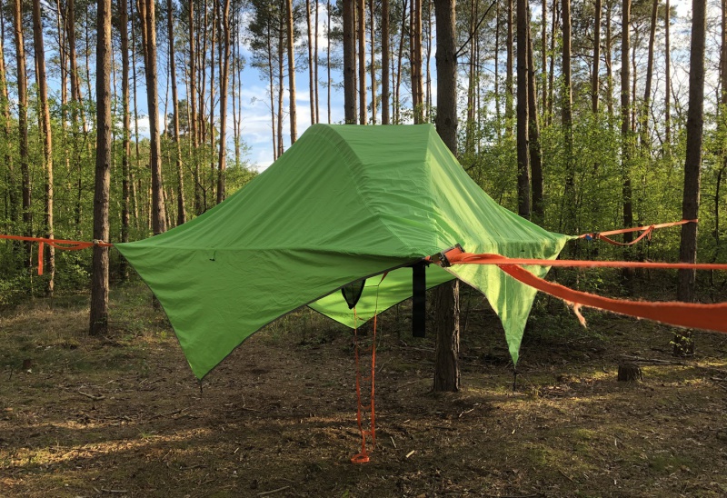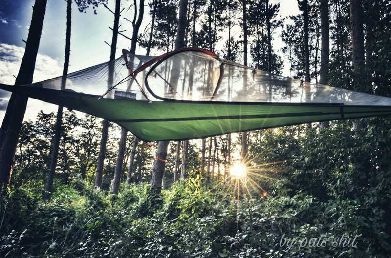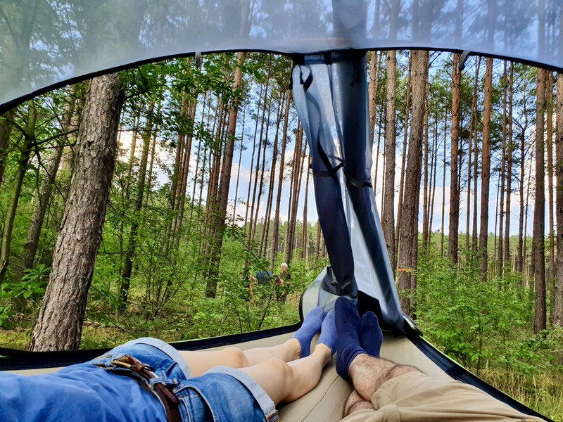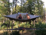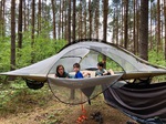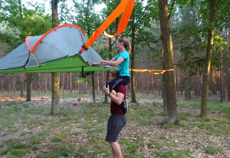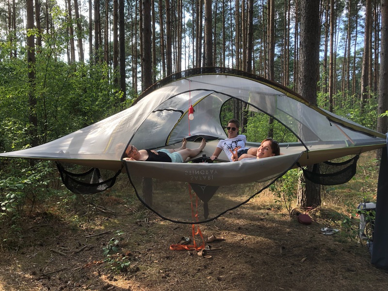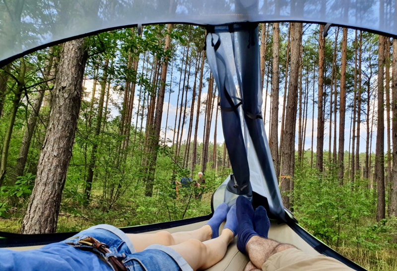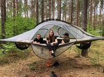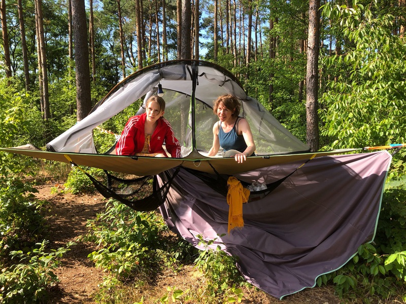 Genießt den Blick auf Baumwipfel, Himmel und Sterne, lauscht den Geräuschen der Natur und atmet frische Waldluft. Ihr könnt zu zweit oder zu dritt ein Hanging Tent mieten oder aber eine ticket to the Moon Hängematte mit Moskitonetz wenn ihr allein schlafen möchtet.