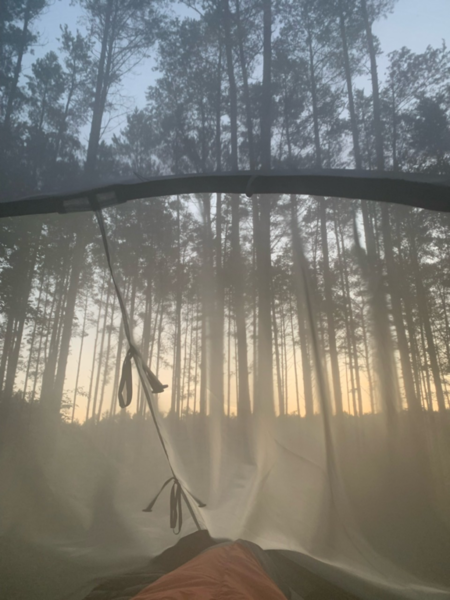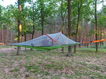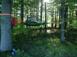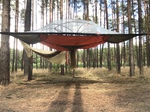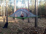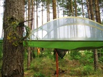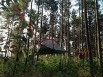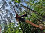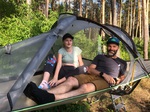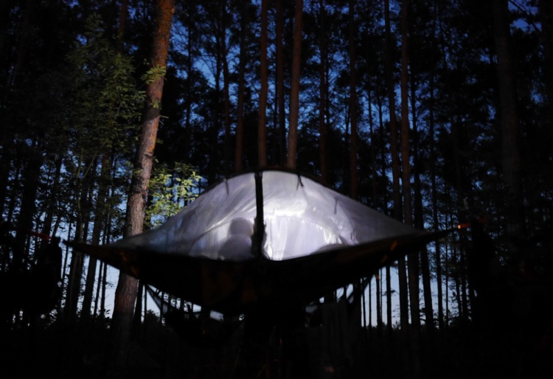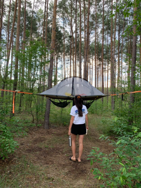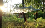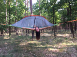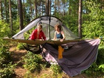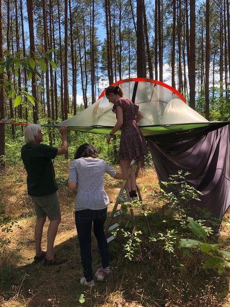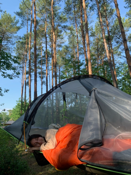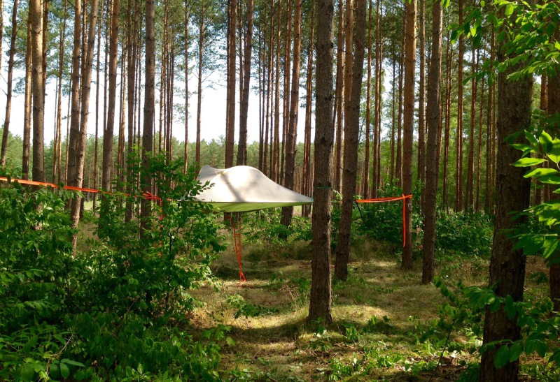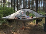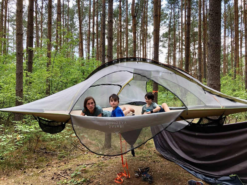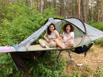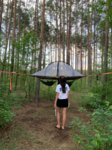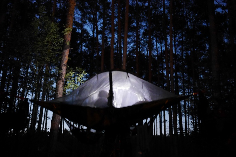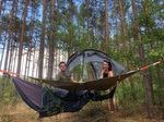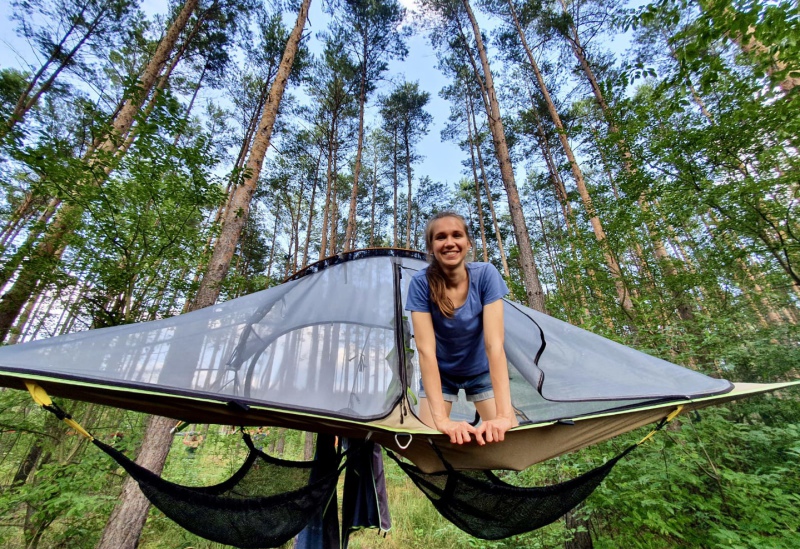 Genießt den Blick auf Baumwipfel, Himmel und Sterne, lauscht den Geräuschen der Natur und atmet frische Waldluft. Ihr könnt zu zweit oder zu dritt ein Hanging Tent mieten oder aber eine ticket to the Moon Hängematte mit Moskitonetz wenn ihr allein schlafen möchtet.